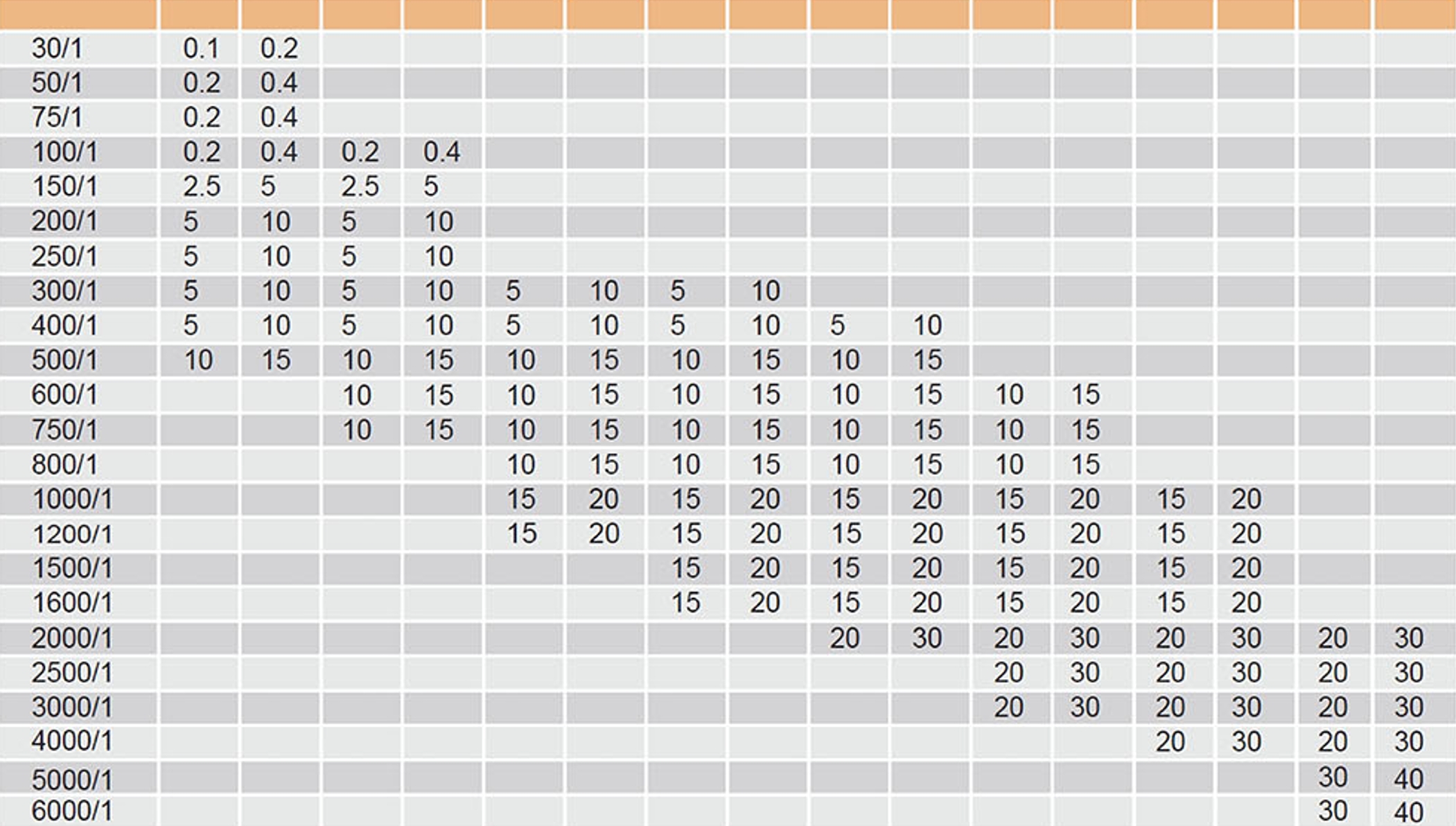 Technical parameter comparison table