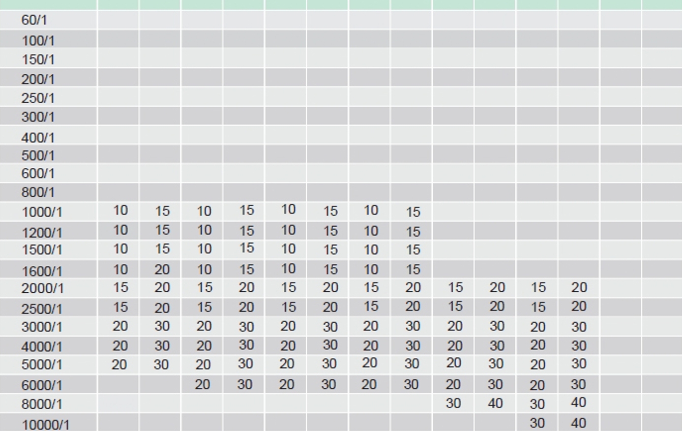 Technical parameter comparison table