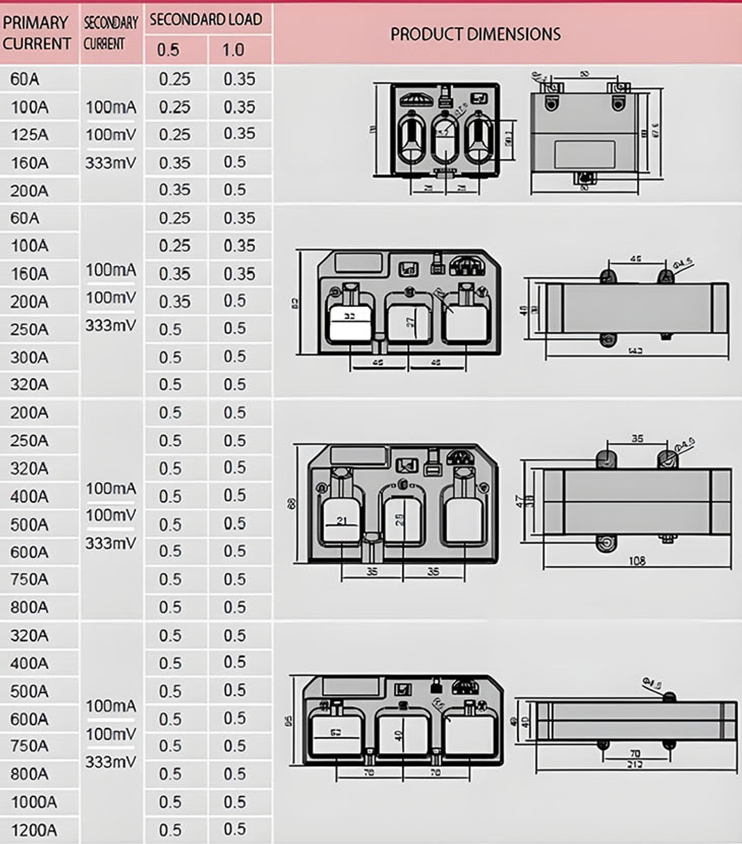 The secondary signal output of the transformer can be a current signal or a voltage signal less than 100mA. The output mode RJ11 network port structure maximizes the convenience of installation.