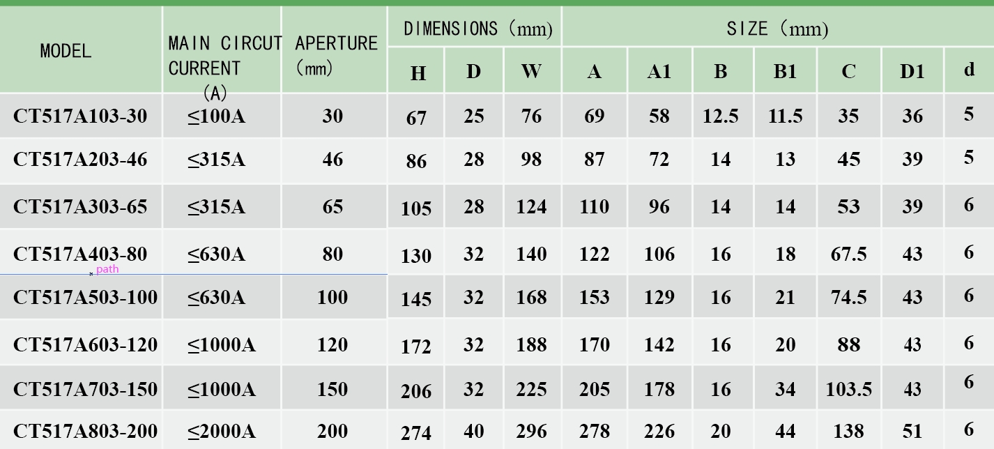 When the residual current transformer passes the corresponding sinusoidal AC current, its output sampling value voltage should meet the requirements in the following table.