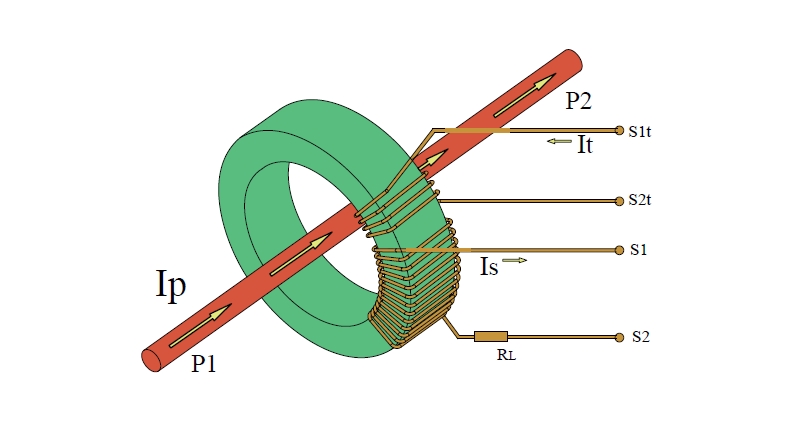 本系列產品的接線端子分別為S1、S2、S1t、S2t共計四個端子。標準產品S1、S2為互感器的二次輸出端子,且S1和P1側同名、S2和P2側同名;根據需要可以增加一個實驗繞組,實驗繞組的輸入端為S1t、S2t、且S1t和P1側同名、S2t和P2側同名。試驗繞組一般的匝數不超過50匝,可以根據需要繞制。