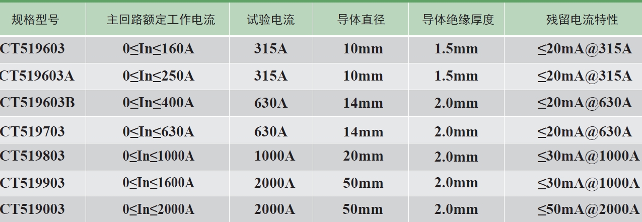 519系列包含5個適用于電纜回路的圓形窗口產品,和7個適用于銅排回路的矩形窗口產品,共計12個規格的產品,基本可以滿足3200A以下配電回路的所有剩余電流的檢測使用。