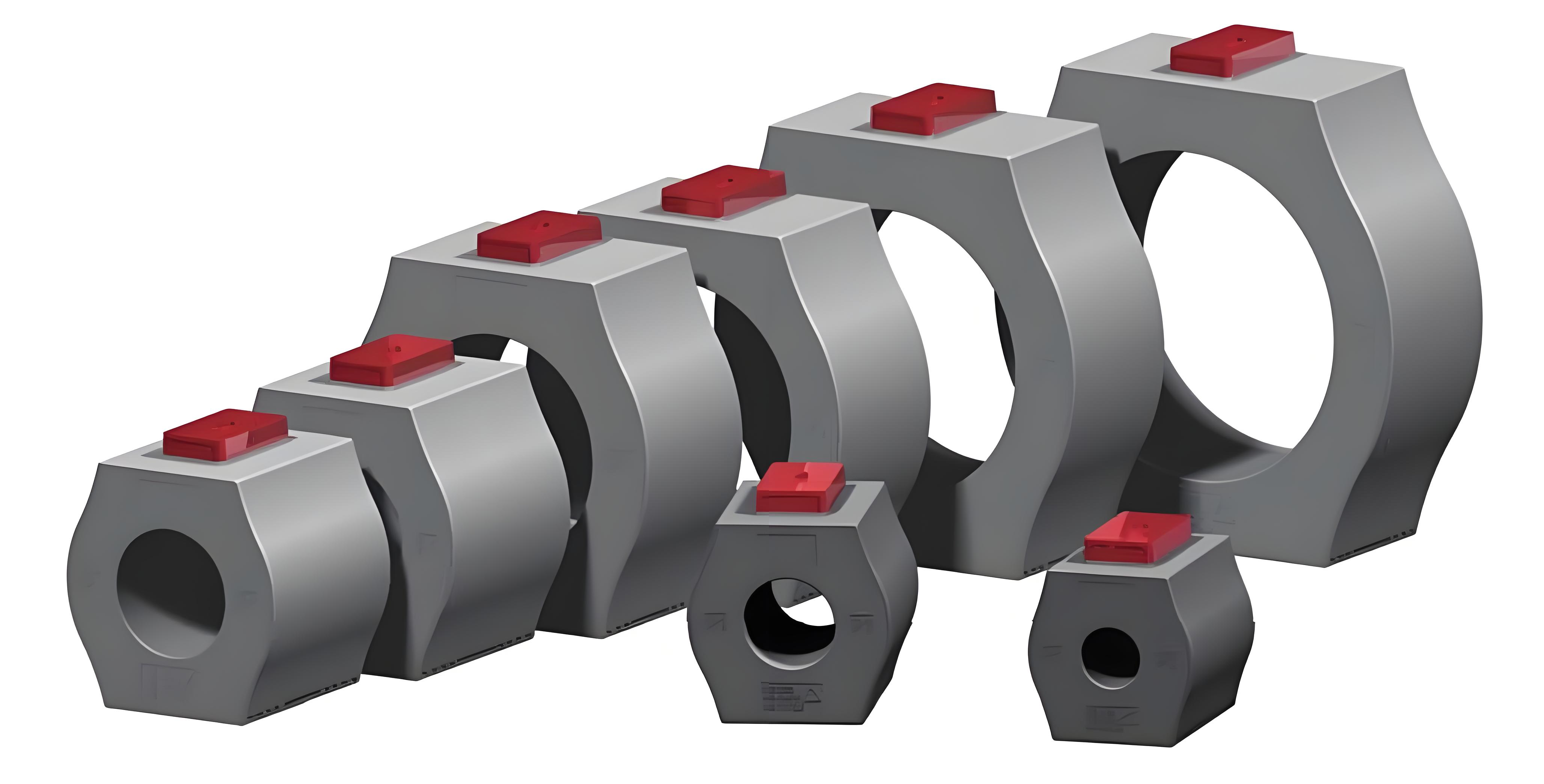 保護類互感器系列包含有適用于銅排安裝的矩形保護用電流互感器和適用于電纜安裝的圓形保護用電力互感器。準確級有5P、10P;準確限值系數有5/10/15/20/30等,額定負荷根據次級電流和變比從3VA-50VA不等。根據設備的輸入特性可以靈活選擇。